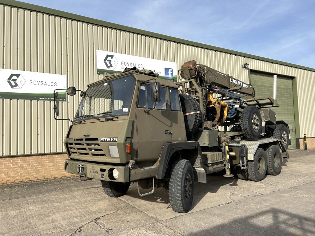Steyr 1491.310 6×6 Timber Loglift Cargo / Crane Truck - Govsales of mod surplus ex army trucks, ex army land rovers and other military vehicles for sale
