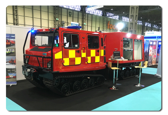 Video of the BV206 Fire Chief on the stand at the Emergency Services Show Video of the BV206 Fire Chief showing the vehicle during a small live fire training exercise