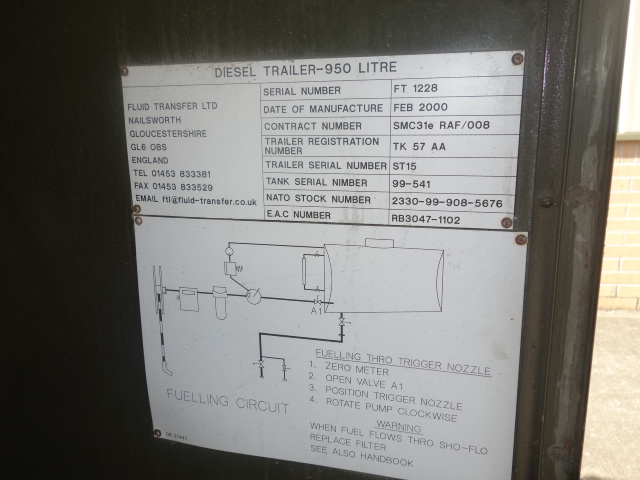Ex Military Fluid Transfer 1000 Litre Drawbar Tanker Trailer - Govsales of mod surplus ex army trucks, ex army land rovers and other military vehicles for sale