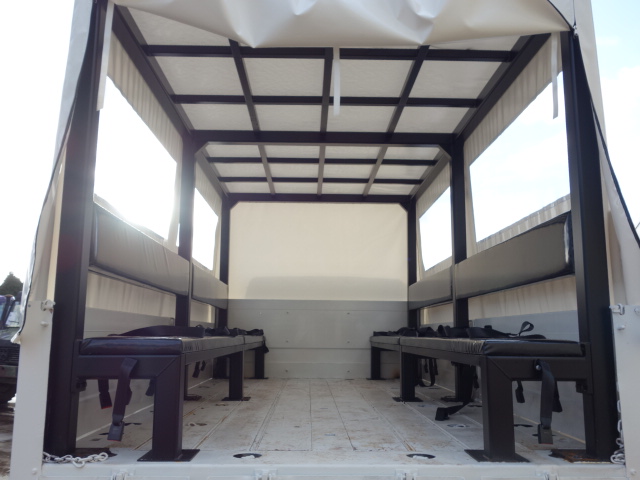 Fitted with a new manufactured heavy duty steel frame with new bench seating and seat belts to carry up to 20 persons, new tarpaulin with side windows, rear step ladder access.
