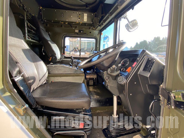 • The MAN HX60 is fitted with an all-steel solid modular cab. The same cab is used across the HX and SX ranges of military trucks. It provides seating for driver and two passengers. There is an observation hatch on the roof. It was used to mount a light machine gun. Separated windscreens are designed for easier replacement. Also these are installed vertically in order to minimize light reflections.