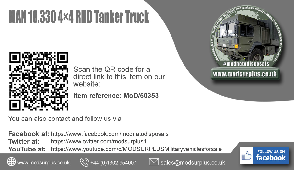MAN HX60 18.330 4x4 Tanker Truck - Govsales of mod surplus ex army trucks, ex army land rovers and other military vehicles for sale