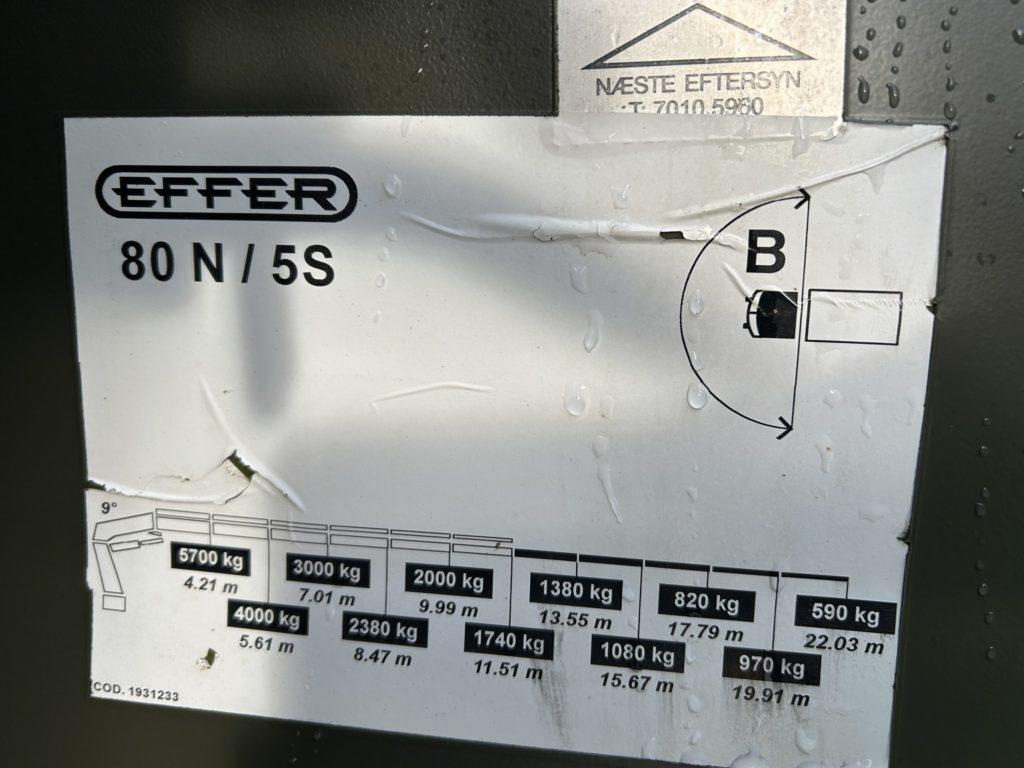 Effer 80N/5S 80 TM Heavy Duty Hydraulic crane spec as below;
